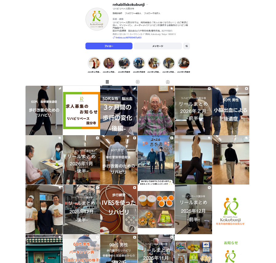 2026年2月後半のリハビリベース国分寺のストーリーズをまとめました。